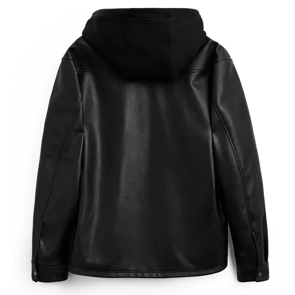 Leather Effect Overshirt With Hood