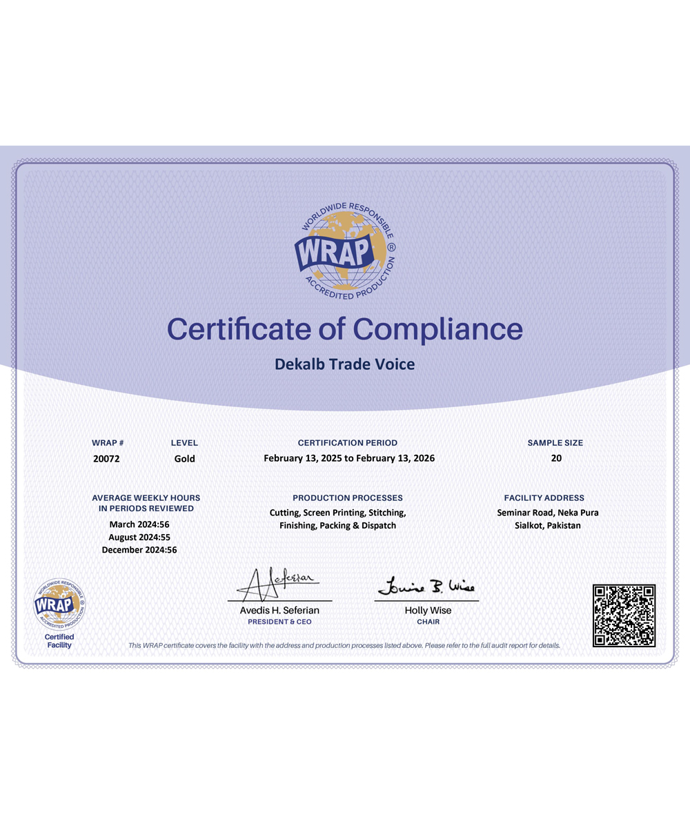 At Dekalb Trade Voice, we are dedicated to delivering exceptional quality and craftsmanship in every piece we create. As a premier manufacturer of apparel, bags, and accessories, our aim is to continually evolve our collections, blending the latest trends with timeless classics to meet and exceed our customers' expectations.