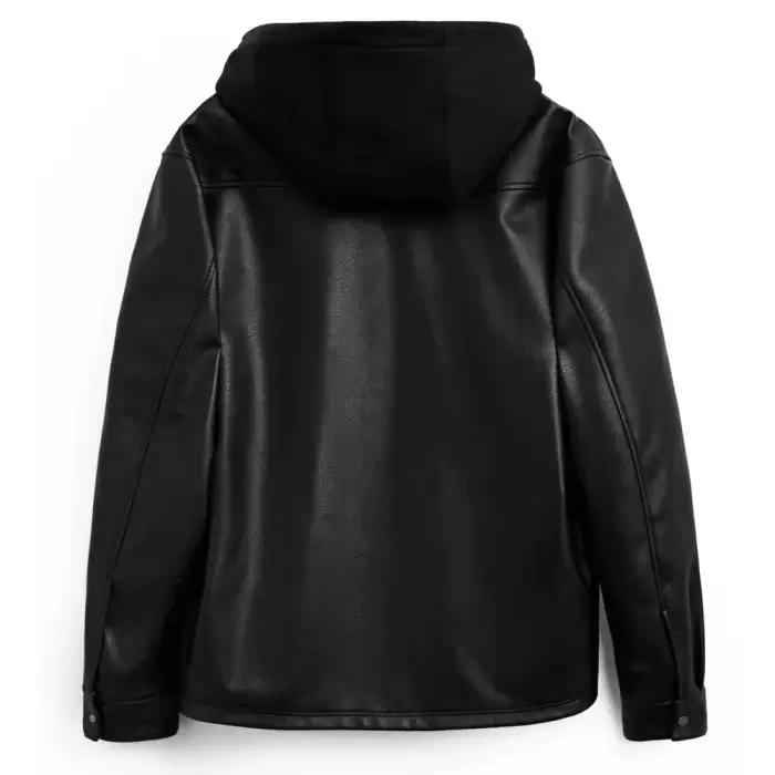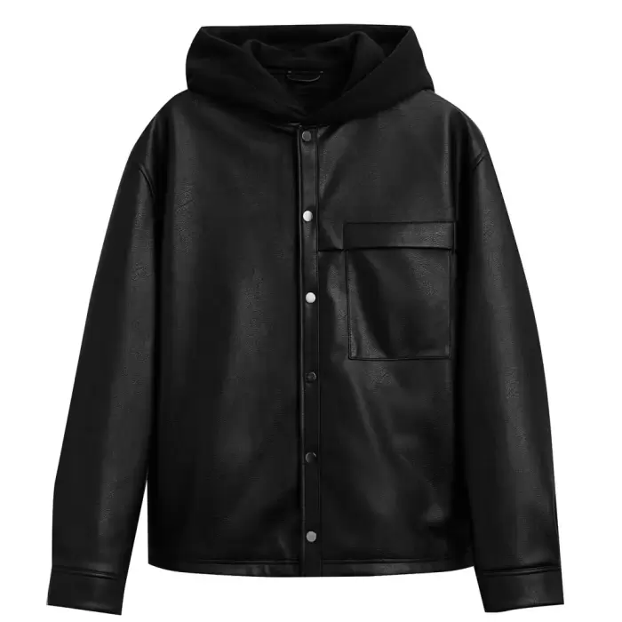 Leather Effect Overshirt With Hood